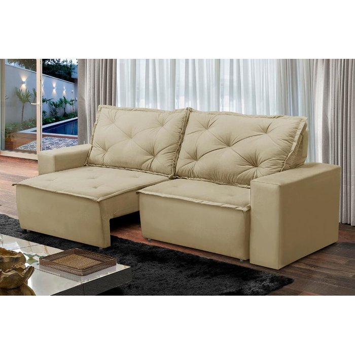 Ver imagem 1 de Sofá Retrátil e Reclinável 3 lugares com Molas 2,00m Ana Suede Bege Adonai Estofados