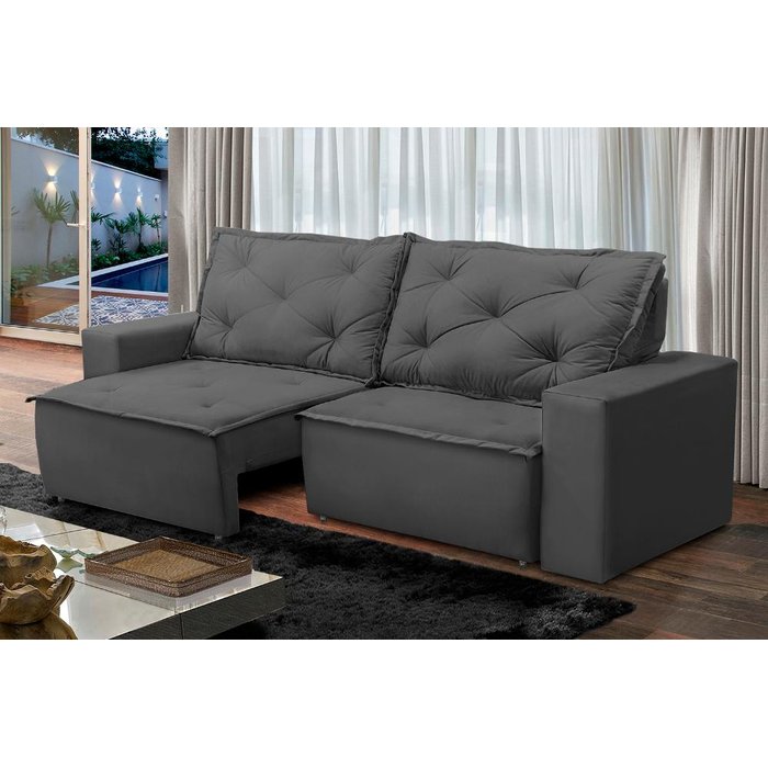 Sofá Retrátil e Reclinável 3 lugares com Molas 2,00m Ana Suede Cinza Adonai Estofados