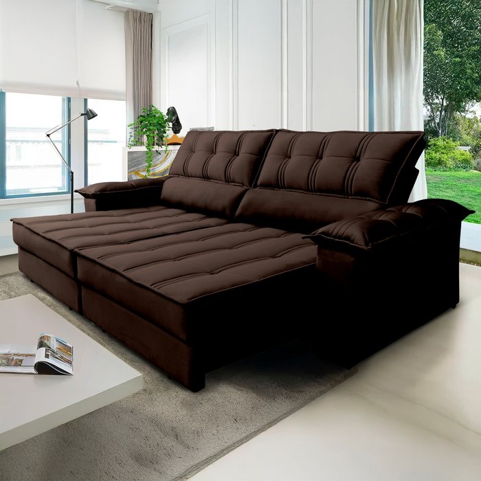 Sofá Retrátil e Reclinável 3 Lugares Ferrara Marrom