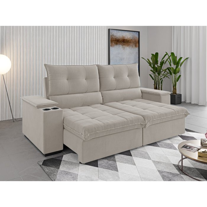Sofá Retrátil e Reclinável 4 Lugares 2,3m Veludo Horus Marfim