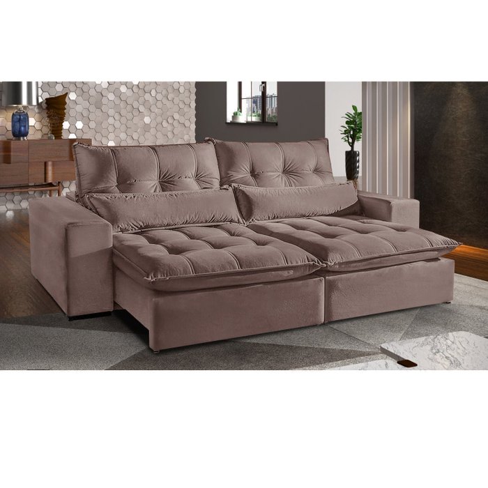 Sofá Retrátil e Reclinável 4 Lugares 2,50m Londres Rosê