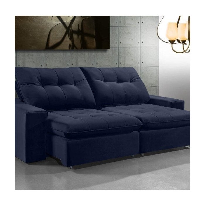 Sofá Retrátil e Reclinável 4 Lugares 234cm x 108cm Monza Estofados Buriti Azul Marinho