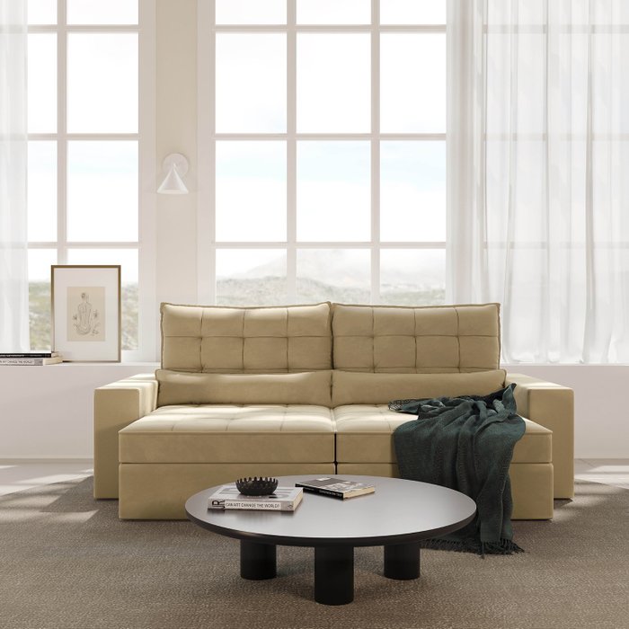 Sofá Retrátil e Reclinável 4 Lugares 260cm Embaúba Extra CabeCasa MadeiraOriginals Palha