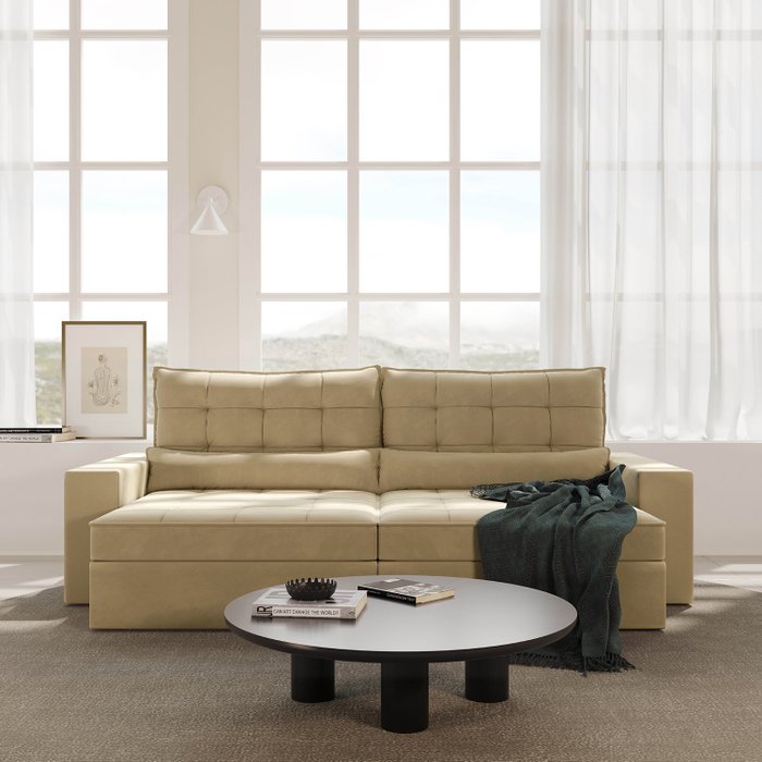 Sofá Retrátil e Reclinável 4 Lugares 280cm Embaúba Extra CabeCasa MadeiraOriginals Palha