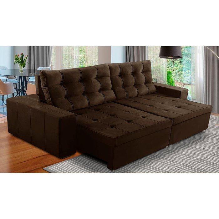 Sofá Retrátil e Reclinável 4 Lugares com Molas 2,70m Duda Suede Marrom Adonai Estofados