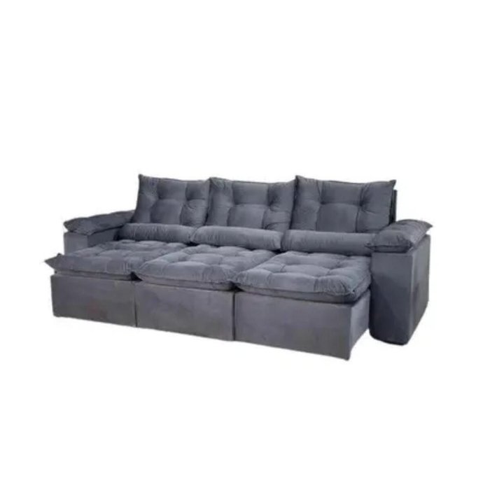 Sofá Retrátil e Reclinável 4 Lugares Grécia Kasa Comigo CinzaTransforme sua sala de estar em um oásis de conforto com este elegante sofá retrátil reclinável. Com 2,70 metros de comprimento, ele oferece amplo espaço para relaxar e receber visitas. Seu design sofisticado é complementado por linhas clean e uma estrutura robusta, que garantem durabilidade e estilo. O sofá é equipado com mecanismos retráteis e reclináveis que permitem ajustar a profundidade e a inclinação do assento, proporcionando uma experiência personalizada de conforto. Basta puxar o assento para frente e ajustar as costas para encontrar a posição perfeita, seja para relaxar após um longo dia ou para assistir a um filme com a famíliaDimensões:Altura: 105cm Comprimento: 270cm Profundidade: 0,98cm Assento aberto: 1,40cmCaracterísticas Principais:Assento: Assento Pillow Top com 12cm de altura em fibra mista em flocos e percinta elástica no assento. Encosto: Possuindo 6 níveis de estágios, seus encostos são reclináveis. Suas almofadas do encosto são removíveis, podendo retira-las da base. Além disso são compostas de fibra mista que proporcionam maior conforto. Tecido: Suede Estrutura: É utilizada a Madeira de Eucalipto 100% de reflorestamento. Peso Sugerido: Até 100kg GARANTIA: