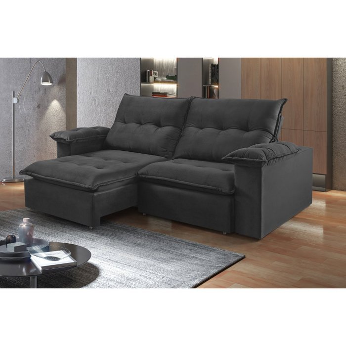 Sofá Retrátil e Reclinável 5 Lugares 250cm México Preto