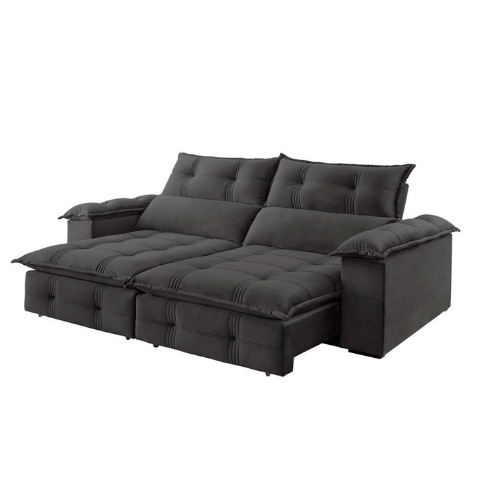 Sofá Retrátil e Reclinável Atlas 2,10m 03 Lugares Mola Ensacada Txr Cinza