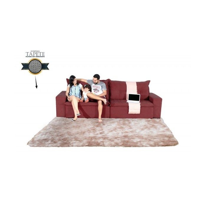 Sofá Retrátil e Reclinavel Austrália 2,72 Mts Com Molas no Assento Tecido Suede Vinho + Tapete Taj M