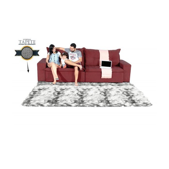 Sofá Retrátil e Reclinavel Austrália 2,72 Mts Com Molas no Assento Tecido Suede Vinho + Tapete Taj M