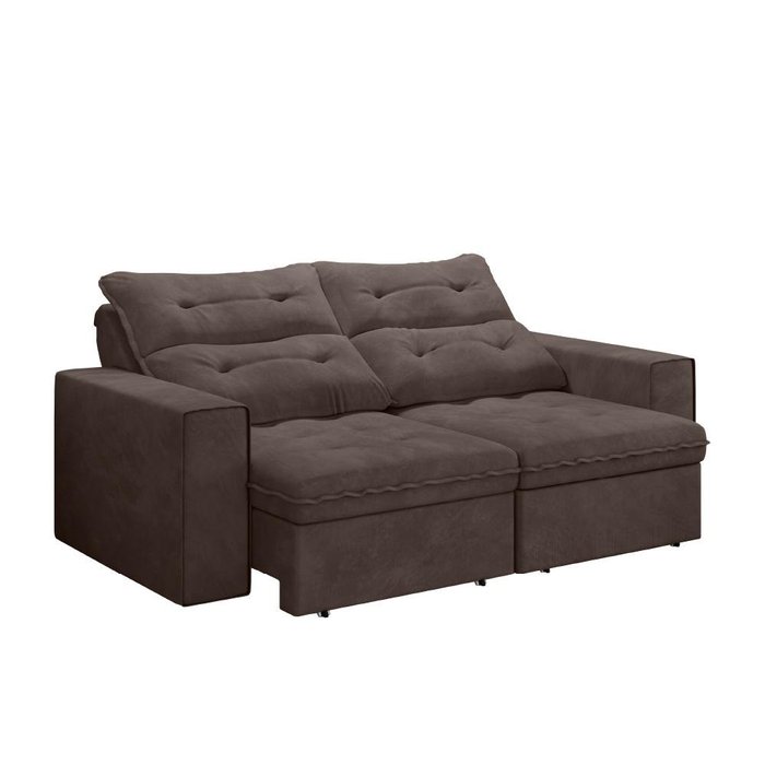 Sofá Retrátil e Reclinável Bipartido com Baú 2m 3 Lugares Maverik Suede Marrom com Molas Selmer