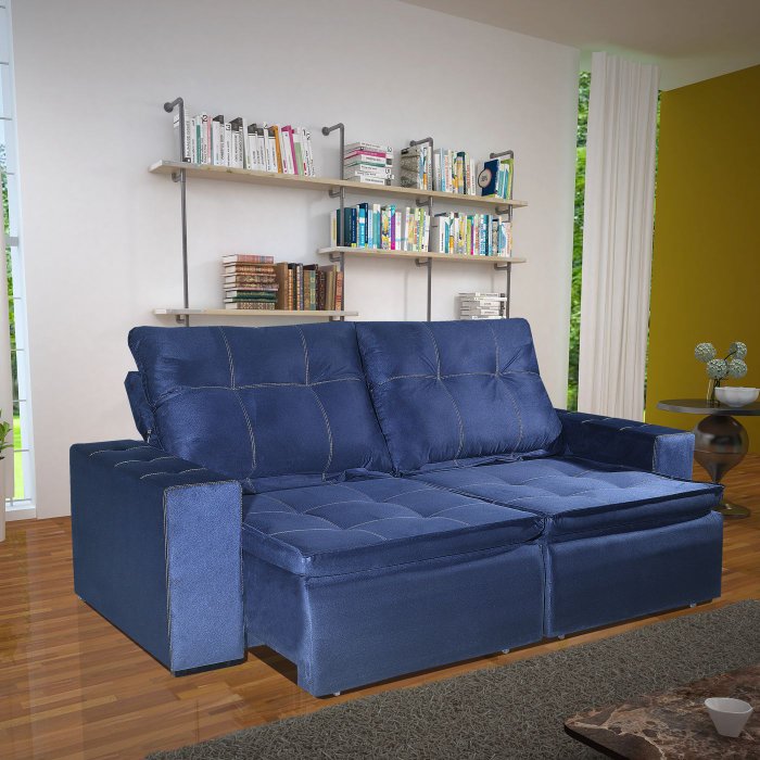 Sofá Retrátil e Reclinável Bom Pastor Net 3 Lugares 2,30m - Azul Veludo Bp