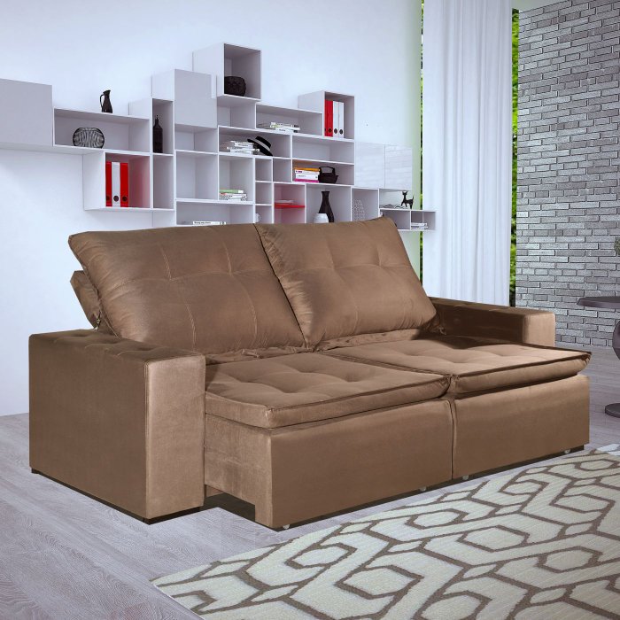 Sofá Retrátil e Reclinável Bom Pastor Net 3 Lugares 2,30m - Marrom Veludo Bp