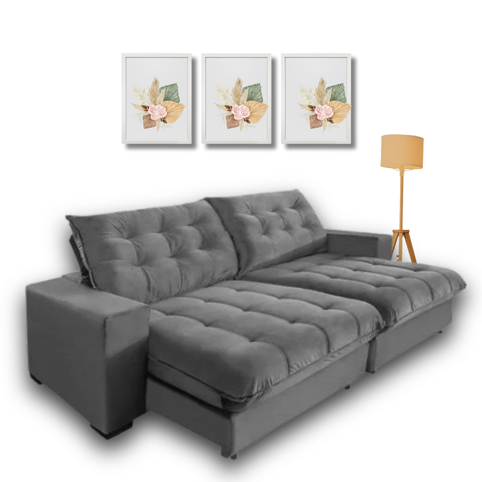 Sofá Retrátil e Reclinável Califórnia Cinza, 2,10m com Molas Ensacadas
