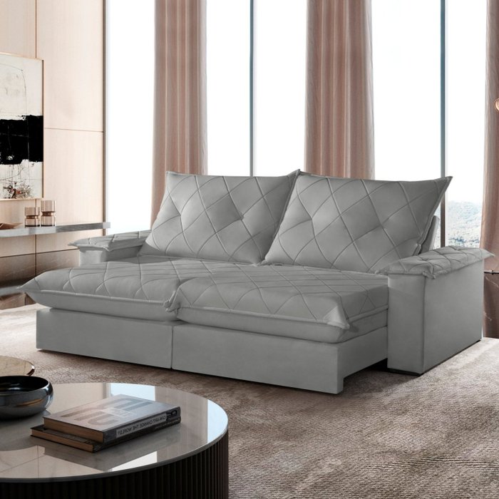 Sofá Retrátil e Reclinável com Catraca Blindada 200cm Mônaco Veludo Prata