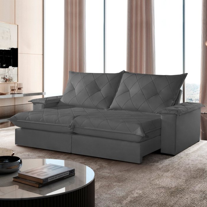 Sofá Retrátil e Reclinável com Catraca Blindada 200cm Mônaco Veludo Grafite