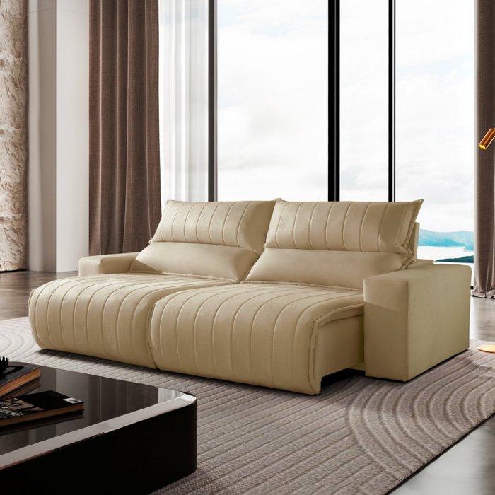 O Sofá Retrátil e Reclinável Palermo oferece o máximo de conforto e sofisticação para sua sala. Com um sistema de reclinação preciso, ele permite ajustar facilmente o encosto e o assento, conforto relaxamento total. Seu assento retrátil amplia o espaço para descanso, tornando-o ideal para momentos de lazer. O design moderno e elegante do Sofá Palermo se adapta a diferentes estilos de decoração, enquanto os materiais de alta qualidade garantem resistência e durabilidade, perfeito para o uso diário.
