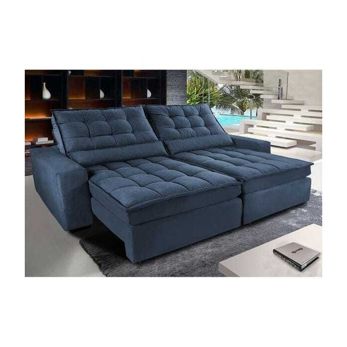 Sofá Retrátil e Reclinável com Molas Ensacadas Cama Inbox Gold 3,12M Tecido Suede Velusoft Azul