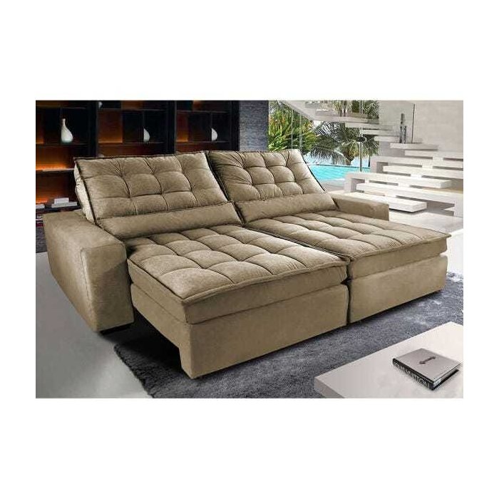 Sofá Retrátil e Reclinável com Molas Ensacadas Cama Inbox Gold 3,12M Tecido Suede Velusoft Castor
