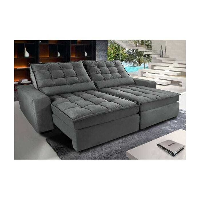 Sofá Retrátil e Reclinável com Molas Ensacadas Cama Inbox Gold 3,12M Tecido Suede Velusoft Cinza Cinza