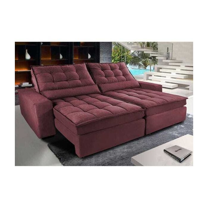 Sofá Retrátil e Reclinável com Molas Ensacadas Cama Inbox Gold 3,12M Tecido Suede Velusoft Vinho Vinho