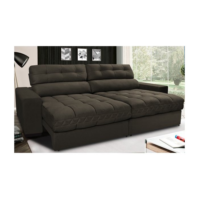 Sofá Retrátil e Reclinável com Molas Ensacadas Cama Inbox Master 2,12M Tecido Suede Café