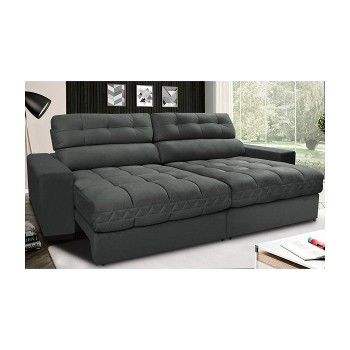 Sofá Retrátil e Reclinável com Molas Ensacadas Cama Inbox Master 2,12M Tecido Suede Cinza
