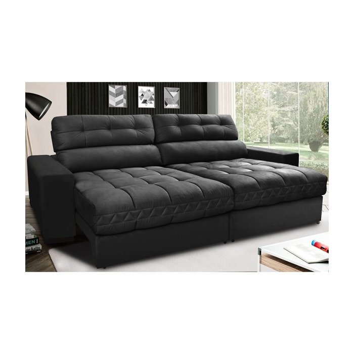 Sofá Retrátil e Reclinável com Molas Ensacadas Cama Inbox Master 2,12M Tecido Suede Preto