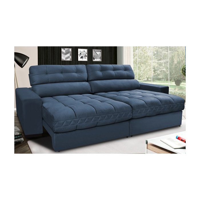 Sofá Retrátil e Reclinável com Molas Ensacadas Cama Inbox Master 2,52M Tecido Suede Azul
