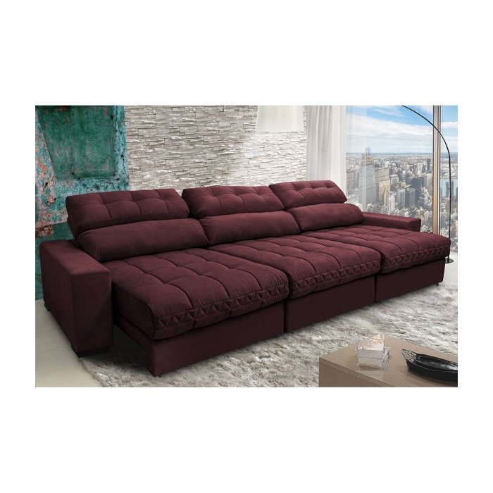 Sofá Retrátil e Reclinável com Molas Ensacadas Cama Inbox Master 3.22M Tecido Suede Vinho