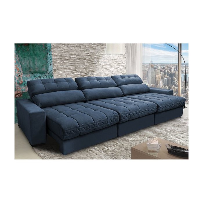 Sofá Retrátil e Reclinável com Molas Ensacadas Cama Inbox Master 3,52M Tecido Suede Azul Azul