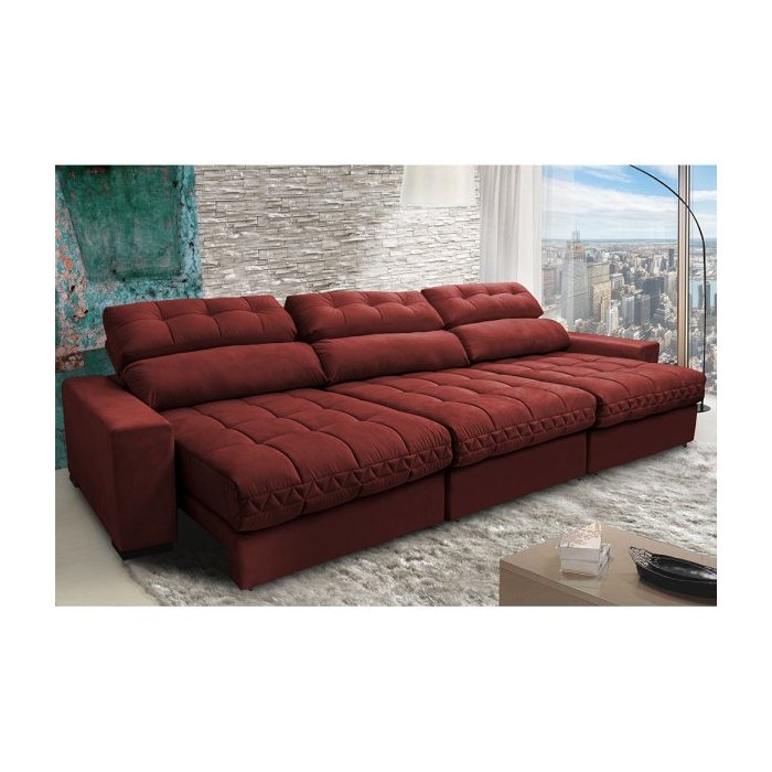 Ver mais imagens de Sofá Retrátil e Reclinável com Molas Ensacadas Cama Inbox Master 3,52M Tecido Suede Vermelho
