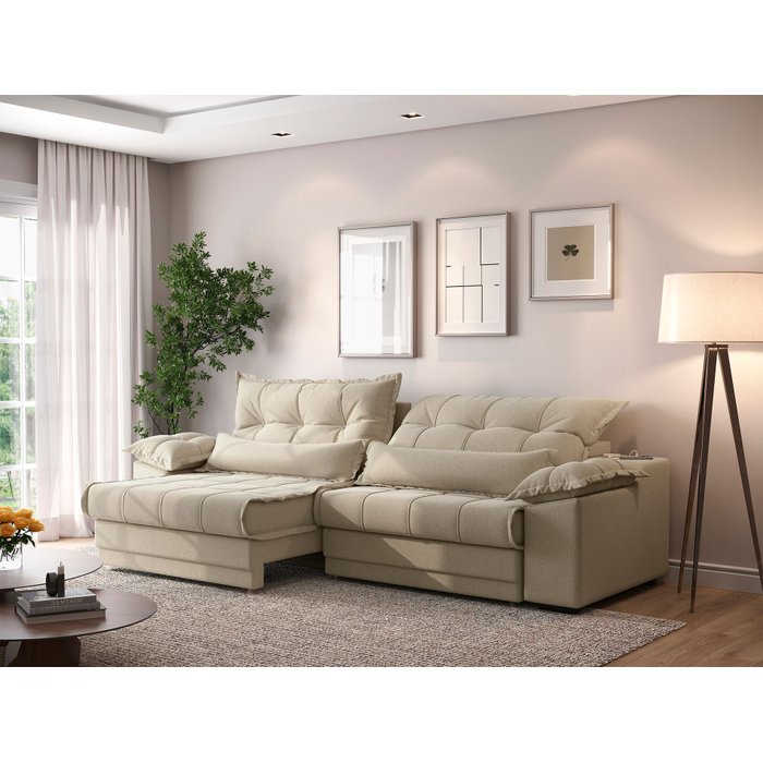 Sofá Retrátil e Reclinável com Molas Ensacadas e Carregador Usb Colosso 2,30m Linho Soft Bege - Bege