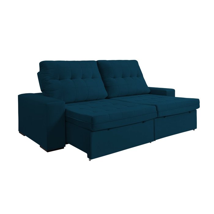 Sofá Retrátil e Reclinavel com Molas Ensacadas e Molas Bonnel Jaspe 2,50m Veludo Azul