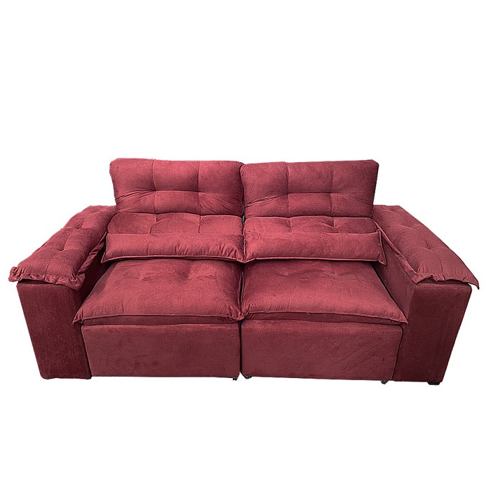 Sofá Retrátil e Reclinável com Pillow Nos Braços Suede Vinho 2 Metros Vinho
