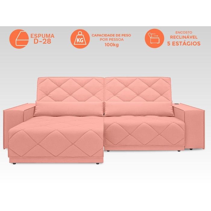 Sofá Retrátil e Reclinável com USB Malibu 2,00m Velosuede Rose – NETSOFAS