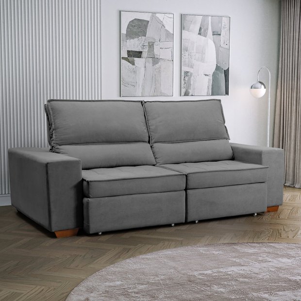 Os estofados retráteis Embaúba possuem linhas econômicas, livre de excessos ao mesmo tempo que seu desenho robusto e de medidas amplas são a escolha ideal para compor uma sala de estar e home cinema de estilo moderno e sofisticado com muito conforto para receber e acomodar toda a família. Com uma cartela ampla de cores, os estofados da linha embaúba se adaptam a diversas propostas de decoração, além de possuírem opções de cores no tecido Veludo fosco que é pet friendly, de fácil limpeza e com textura suave. Seu assento é preenchido com espuma HR-33 Soft, manta acrílica, TNT resinado, percintas italianas e molas bonnel. Encosto com catraca blindada de 7 estágios de recline, preenchido com 100% de fibra siliconada. A estrutura é fabricada em eucalipto reflorestado que possui excelente resistência e durabilidade.
