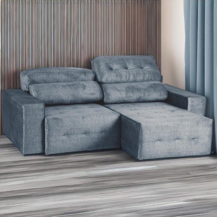 Sofá Retrátil e Reclinável Évora 3 Lugares 2,10m Veludo Luxor Grafite Espuma D28