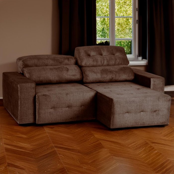 Sofá Retrátil e Reclinável Évora 4 Lugares 2,50m Veludo Luxor Chocolate Espuma D28