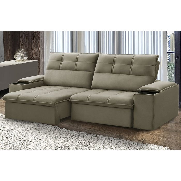 Sofá Retrátil e Reclinável França 210 Cm com Porta Copos e Objetos