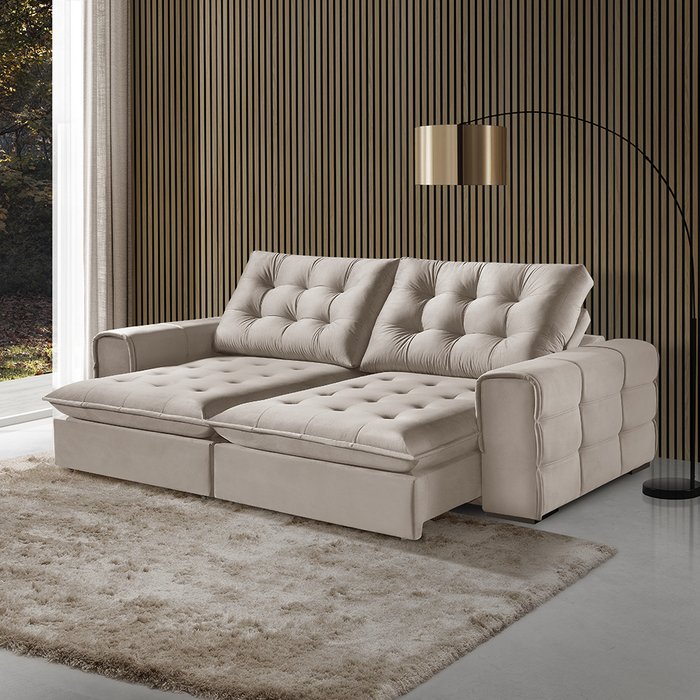 Sofá Retrátil e Reclinável Galliano 1,80m Veludo Bege - Fortbello Estofados