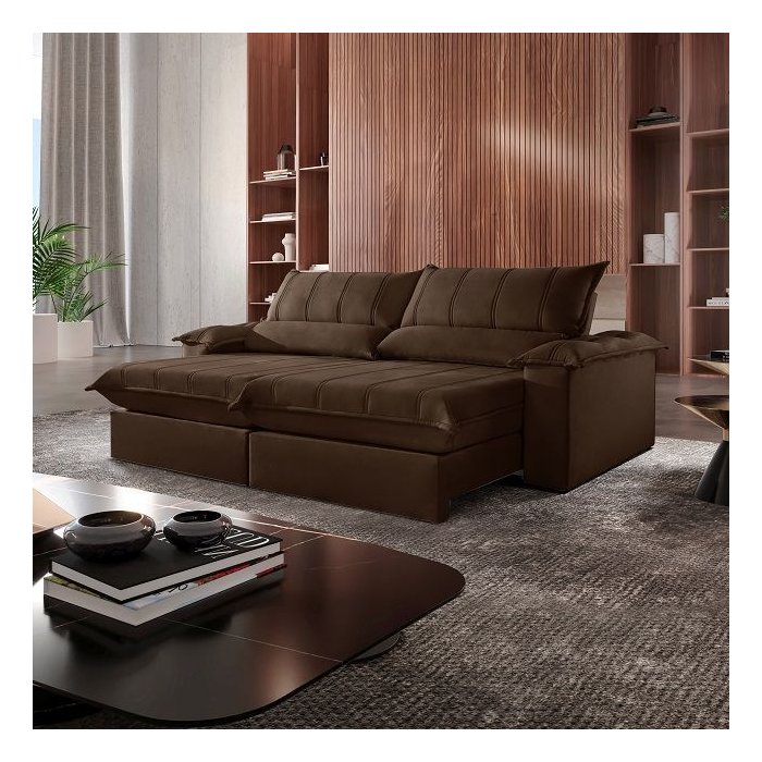 Sofá Retrátil e Reclinável Genova 2.80m - Movenzo Estofados Jolie Marrom