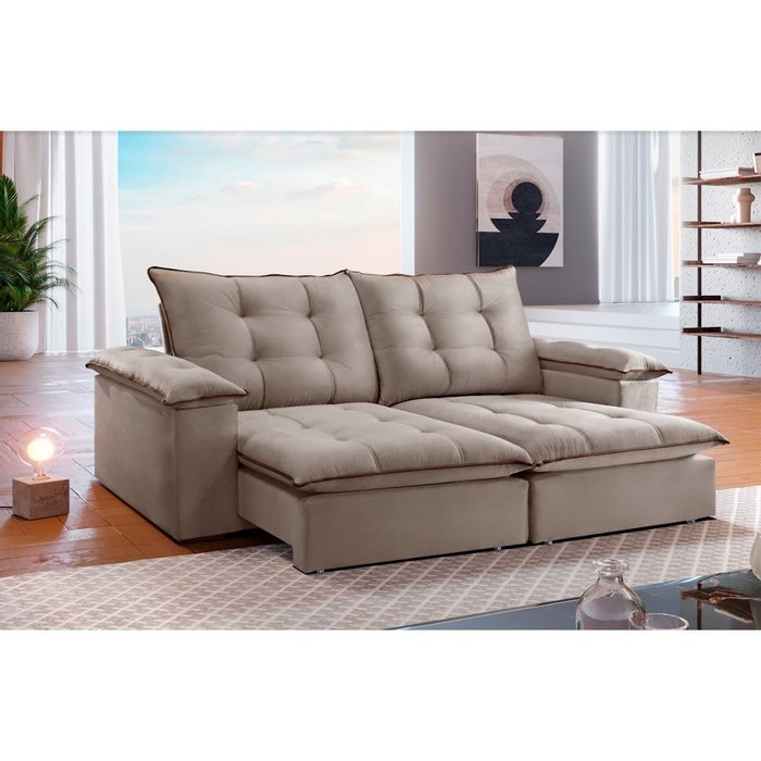 Suavidade e conforto em sua casa com o Sofá Hera que possui encosto reclinável, assento com Pillow de molas ensacadas, percinta elástica tipo italiana para maior durabilidade, fibra siliconada, assento retrátil com rodízios que facilitam seu movimento.