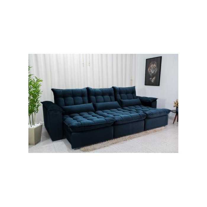 Sofá Retrátil e Reclinável Ipanema 2,10m em Tecido Veludo C/ 03 Módulos - Montagem Inclusa:azul