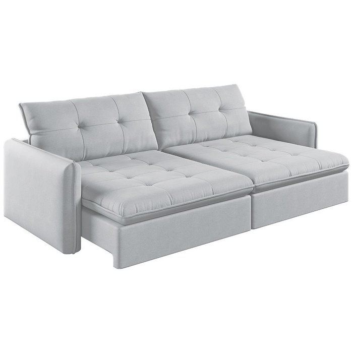 Material: O sofá possui estrutura em madeira de reflorestamento, assento retrátil com mecanismo metalico, pillow nos assentos com 16cm de espuma contínua D28 Supersoft sustentado por 4 molas de aço, encosto reclinável em 3 posições, almofadas soltas com enchimento em fibra de silicone. O revestimento é em linho 100% poliéster, os módulos retráteis contam com rodinhas de silicone, os pés são de madeira, unindo conforto, resistência e elegância.