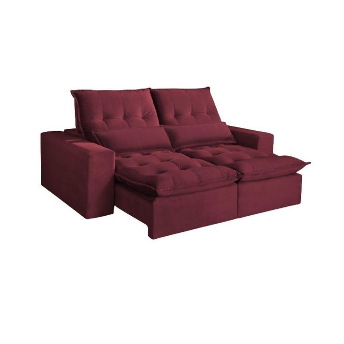 Sofá Retrátil e Reclinável Leblon Tecido Veludo Vinho 2,10 M