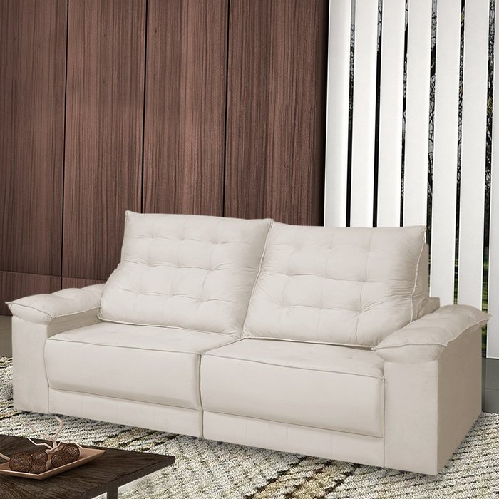 Sofá Retrátil e Reclinável Living Maittê 2,50m Veludo Bege