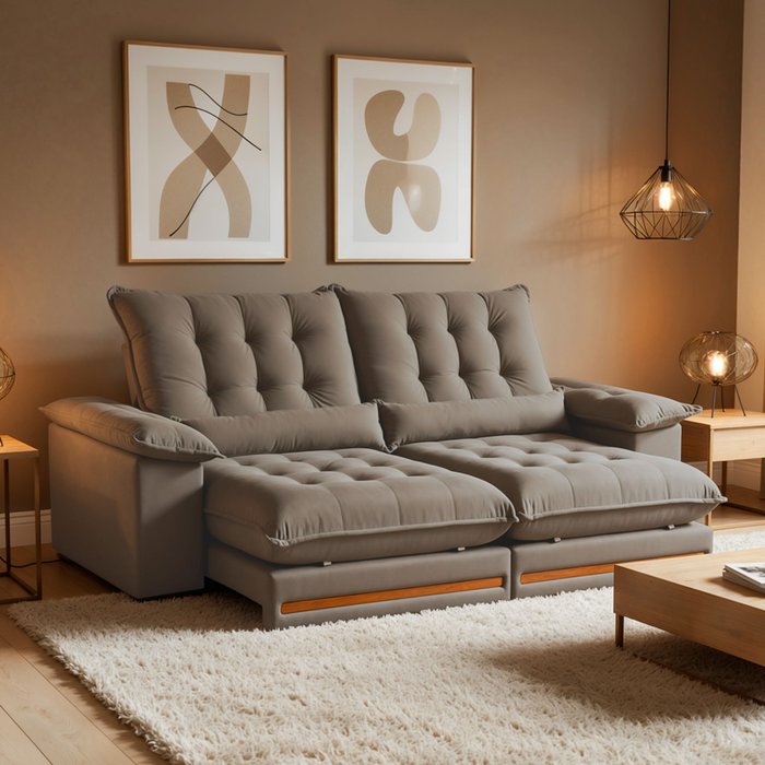 Sofisticação, conforto e durabilidade em um só sofá! Esse sofá retrátil e reclinável é perfeito para quem ama relaxar com estilo. Sua base de madeira eucalipto garante resistência e qualidade, enquanto o assento macio e os braços com almofadas confortáveis proporcionam aquele abraço acolhedor. Com cores clean que combinam com qualquer decoração, ele transforma sua sala no refúgio perfeito para descansar, maratonar séries e curtir bons momentos.