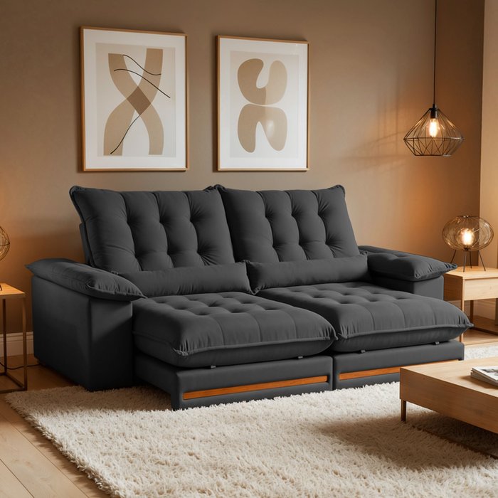 Sofá Retrátil e Reclinável Molas Ensacadas 4 Lugares 290cm Istambul Cinza