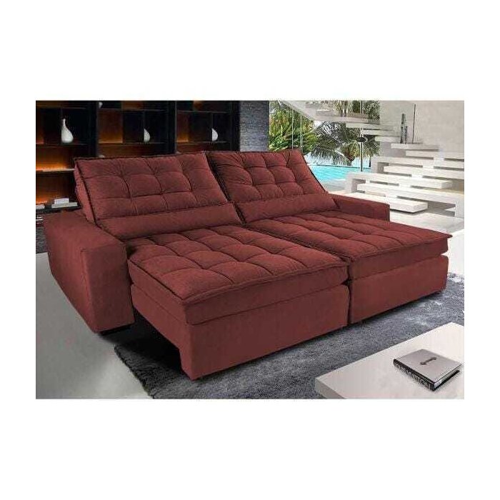 Sofá Retrátil e Reclinável, Molas Ensacadas Cama Inbox Gold 2,92M Tecido Suede Velusoft Vermelho